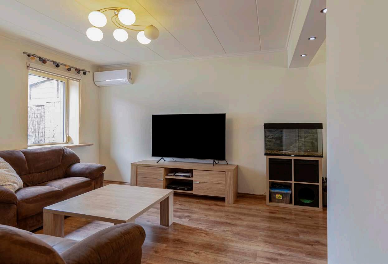 De woonkamer is goed bemeten en voorzien van een fijne lichtinval dankzij de raampartijen. De tegelvloer in combinatie met de strak gestucte wanden geven deze ruimte een moderne en luxe uitstraling. En de indeling? Daar hoef je je geen zorgen over te maken, want alle inboedel blijft gewoon staan!