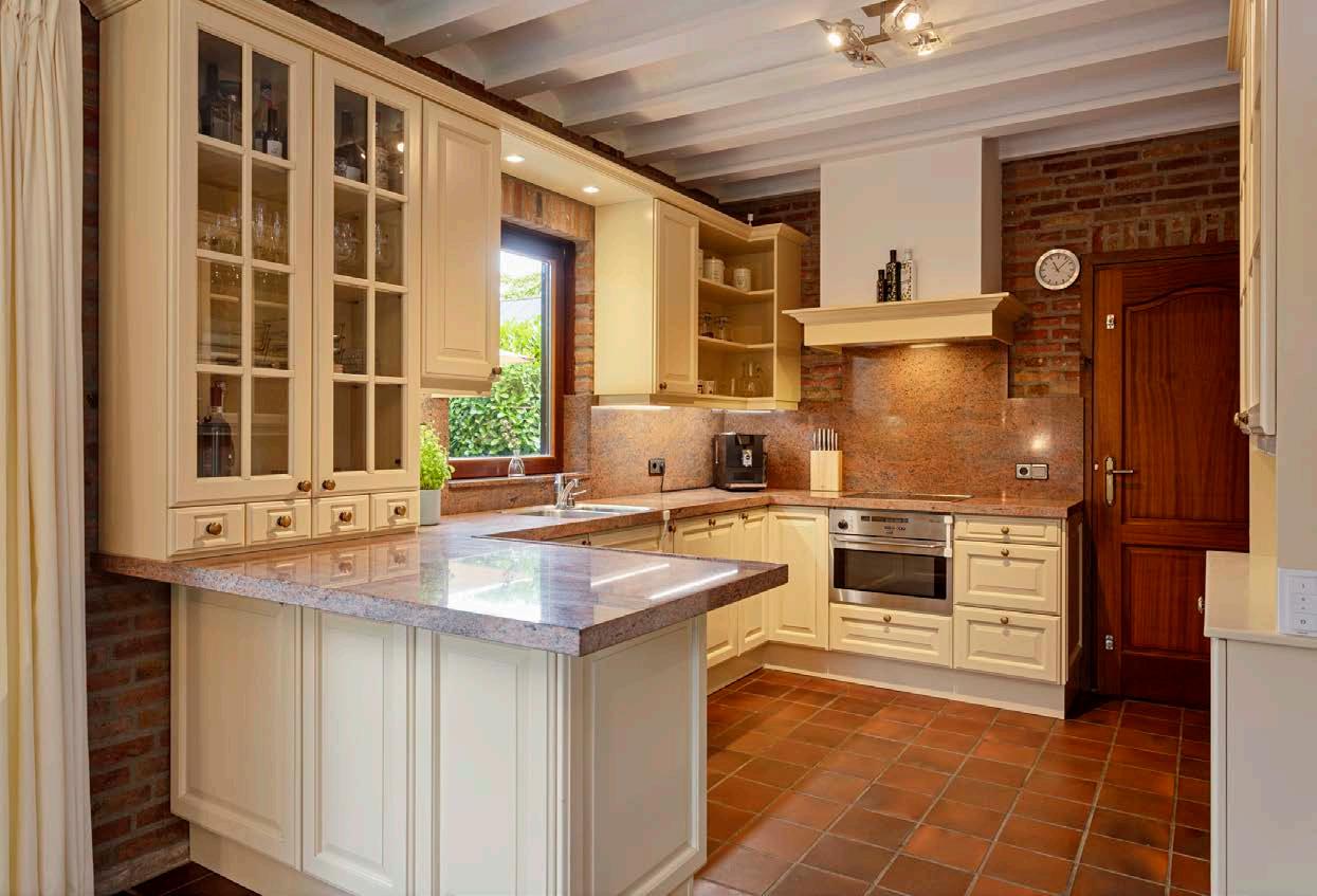 De keuken is van alle gemakken voorzien en verkeert in een nette staat. U vindt hier onder andere een vaatwasser, elektrische kookplaat, combi-oven en afzuigkap. Door de ruime opzet is er tussen de woonkamer en keuken genoeg plek voor onder meer een gezellige en grote eettafel. Via de woonkamer heeft u toegang tot de tuin via dubbele openslaande deuren.