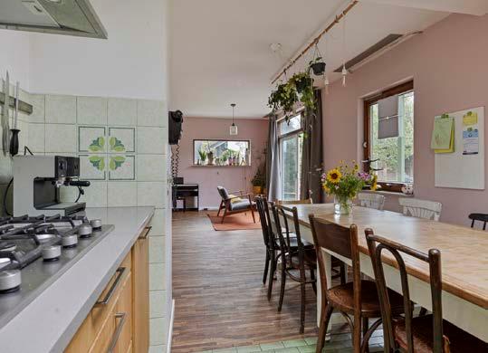 De grote woonkeuken vormt het hart van het huis. Hier kook je niet alleen de sterren van de hemel, maar creëer je ook herinneringen met vrienden en familie. De keuken is van alle gemakken voorzien en biedt een fijne plek voor lange, gezellige maaltijden of snelle ontbijtjes.