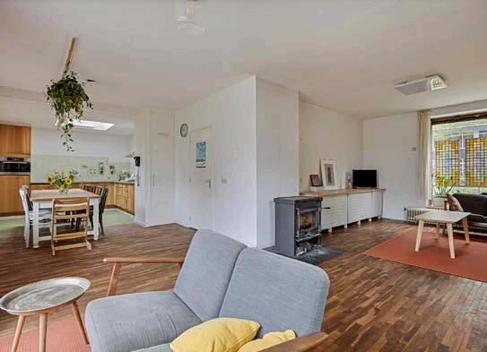 Stap binnen in dit ruime huis met een woonoppervlakte van 156 m² en voel direct de warme, uitnodigende sfeer. De hal leidt naar een lichte en ruime L-vormige woonkamer, waar de grote ramen en de schuifpui naar de tuin zorgen voor veel natuurlijk licht. In de winter biedt de houtkachel een knusse sfeer, terwijl je in de zomer de schuifpui opent om het buitenseizoen in je woonkamer te verwelkomen.