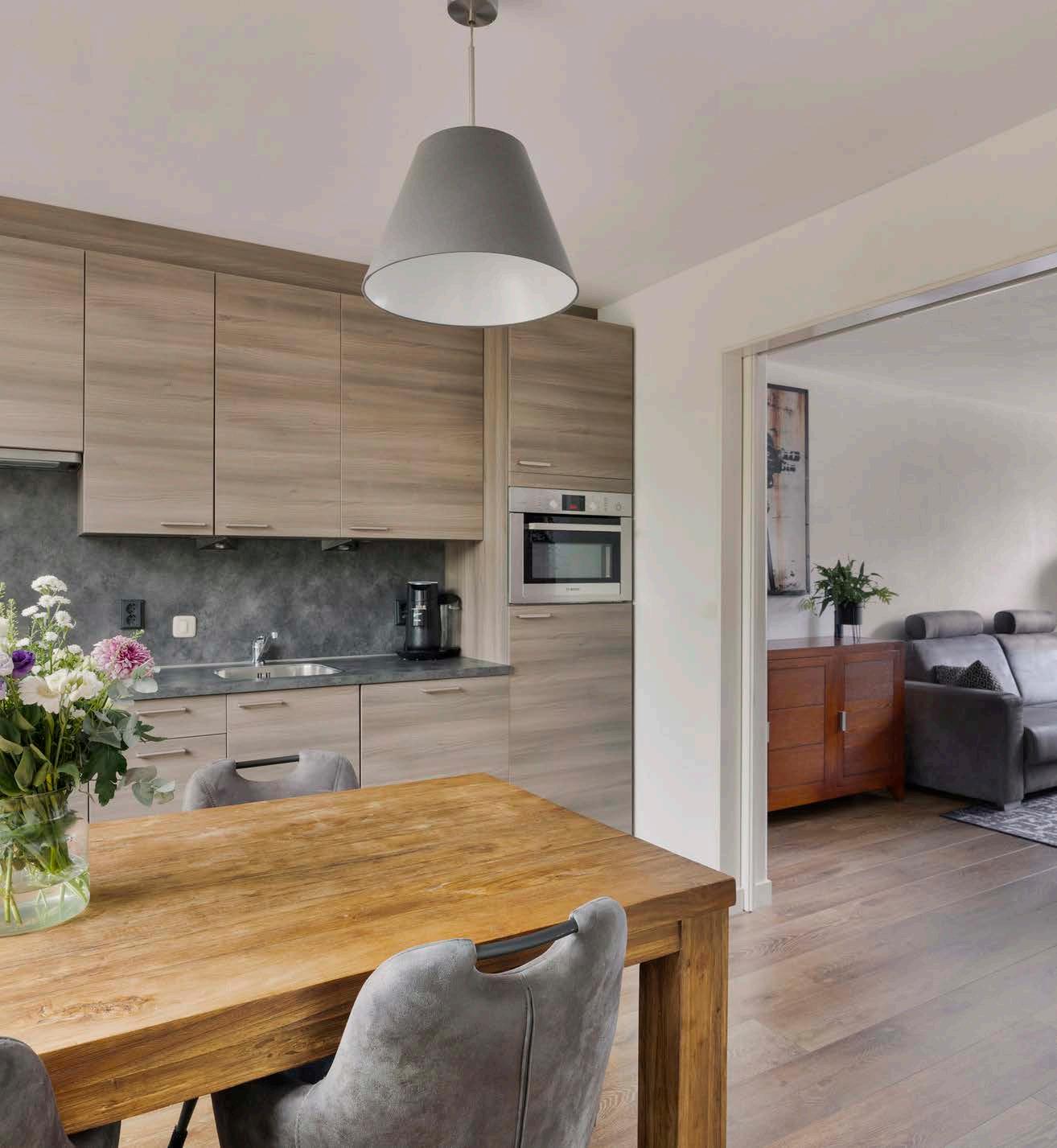 De moderne keuken is volledig uitgerust en klaar om jouw culinaire avonturen te ondersteunen. Hier kook je de heerlijkste maaltijden terwijl je geniet van het uitzicht op je eigen, kindvriendelijke tuin.