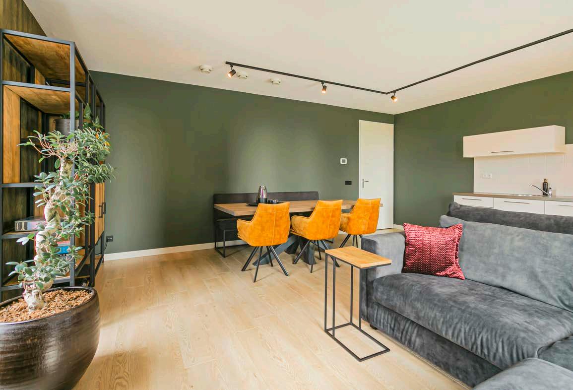 Daarnaast is het geheel afgewerkt met strakke wanden (behang) en ligt er door het gehele appartement een houtlook laminaatvloer voorzien van vloerverwarming wat maakt dat je over een instapklare basis beschikt waarin je al snel een fijn nieuw thuis zult creëren.