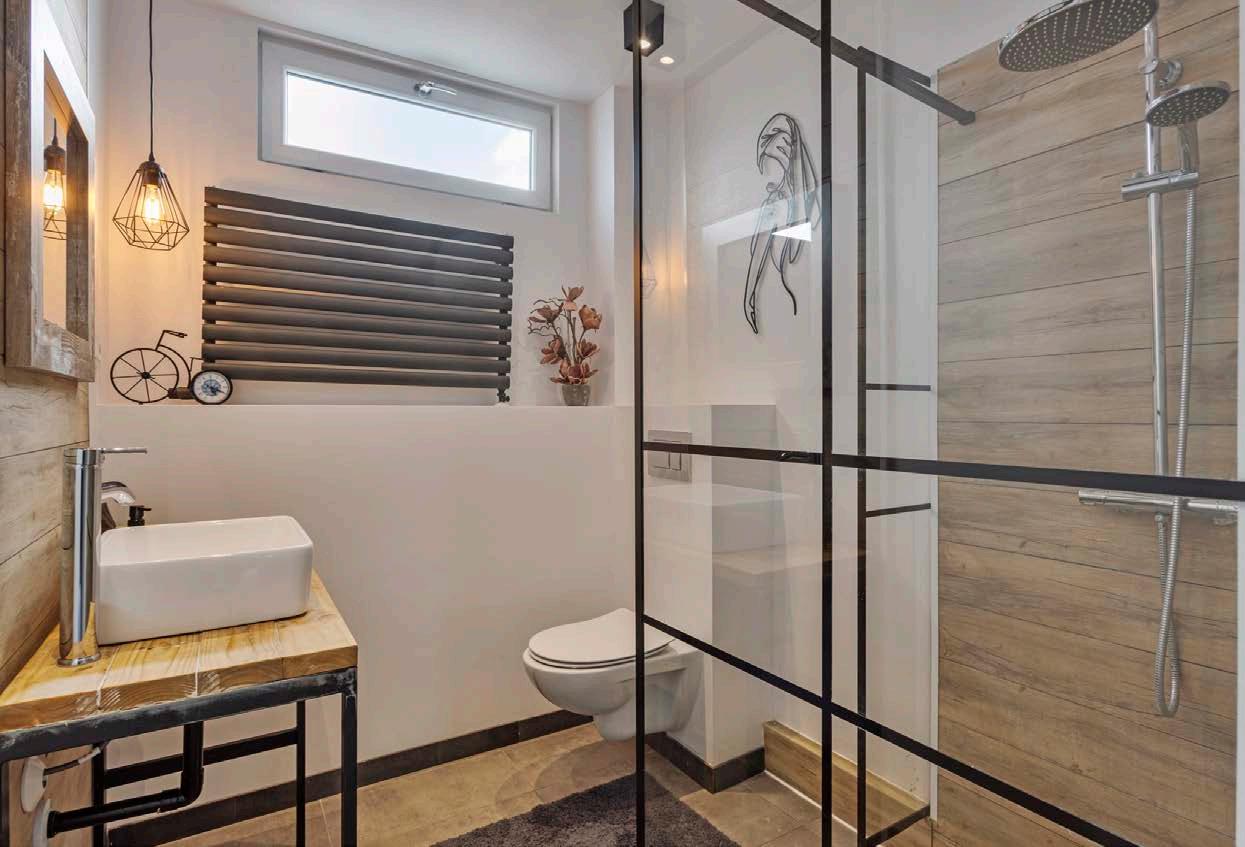 De badkamer in deze woning is meer dan een ruimte voor de dagelijkse routine; het is een persoonlijk wellnesscentrum. Met een inloopdouche waar de stress van de dag van je afglijdt en een vrijstaand bad dat uitnodigt tot lange, ontspannen sessies, is dit een ruimte waar luxe en comfort samenkomen. De moderne afwerking en het doordachte ontwerp zorgen ervoor dat je elke dag begint en eindigt in een omgeving die zowel stimuleert als kalmeert. Het is een plek waar je jezelf kunt zijn en waar je je kunt opladen voor wat de dag ook brengt.