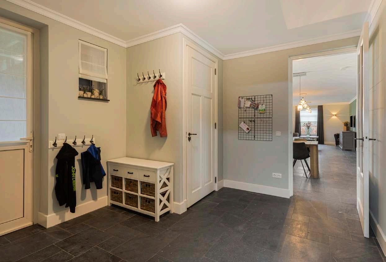 Stap binnen in deze schitterende woonboerderij en laat je zintuigen prikkelen door de naadloze combinatie van rustieke charme en moderne luxe. De ruime hal biedt toegang tot het kantoor en de woonkamer. Kijk om je heen en stel je de mogelijkheden voor: een grote familietafel in de eetkamer, waar je samenkomt voor feestelijke maaltijden, of de gezellige zithoek waar je je kunt nestelen met een goed boek, zie jij de mogelijkheden?
