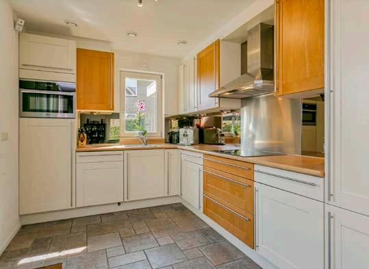 De open keuken is voorzien van een nette keukeninrichting in hoekopstelling. De keuken is voorzien van een 1,5 spoelbak, vaatwasser, inductie kookplaat, afzuigkap, combimagnetron, koelkast en veel opbergmogelijkheden. Vanuit de keuken heb je via een deur direct toegang tot de tuin.