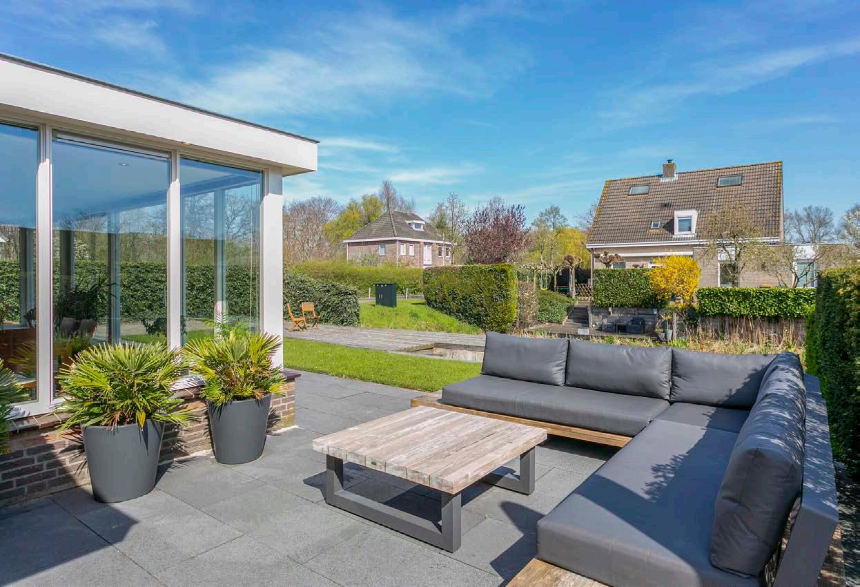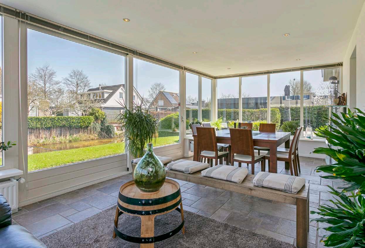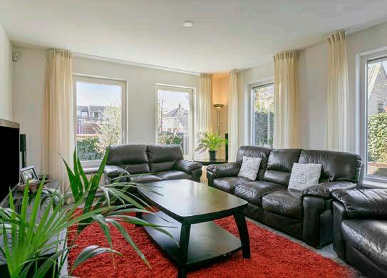 Een zee van licht en ruimte! De woonkamer is bijzonder ruim van opzet en biedt een tal van mogelijkheden qua inrichting. Hoewel de woonkamer in totaal maar liefst 72m2 (excl. keuken) is, is deze door de speelse indeling ook erg gezellig. Door de vele raampartijen is er vanuit elke hoek zicht op de tuin. Vooral vanuit de tuinkamer/serre met schuifpui is er een heerlijke verbinding tussen binnen en buiten.