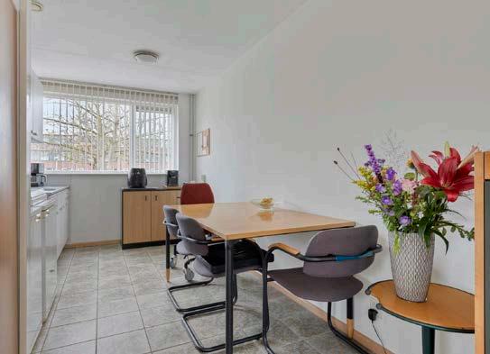 Als ik links vanuit de keuken kijk zie ik het Wilhelminapark waar vaak wat te doen is; van gezellige muziek tot festiviteiten toe. Koningsdag voor de kinderen. Je zit lekker dicht bij de stad, bij de winkels, bij het station. Kortom: overal kun je op loopafstand of met de fiets, rolstoel, heen. En dat vind ik zo gemakkelijk.