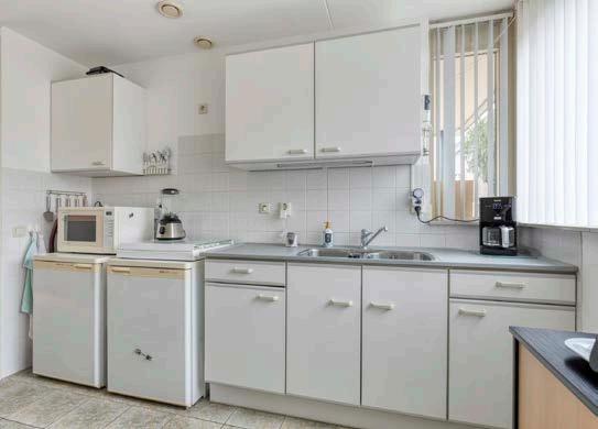 Een keuken die eenvoudig van opzet is maar zeker nog functioneel. De half-open opstelling zorgt voor een gezellige verbinding met de woonkamer, terwijl je vanaf het fornuis heerlijk uitkijkt over het plein. Hier kook je hier met gemak voor het hele gezin. Een functionele én sfeervolle plek om je favoriete recepten tot leven te brengen.