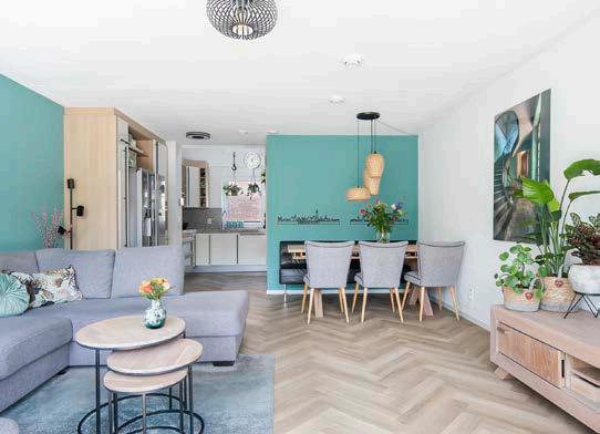 De woonkamer is tuingericht en dankzij de gunstige ligging op het zuidwesten valt het daglicht hier vrijwel de hele dag aangenaam binnen. De begane grond is instapklaar afgewerkt met een mooie visgraat pvc-vloer met vloerverwarming en daarnaast is er nog airco aanwezig; verkoelen in de zomer en verwarmen in de winter, ideaal!