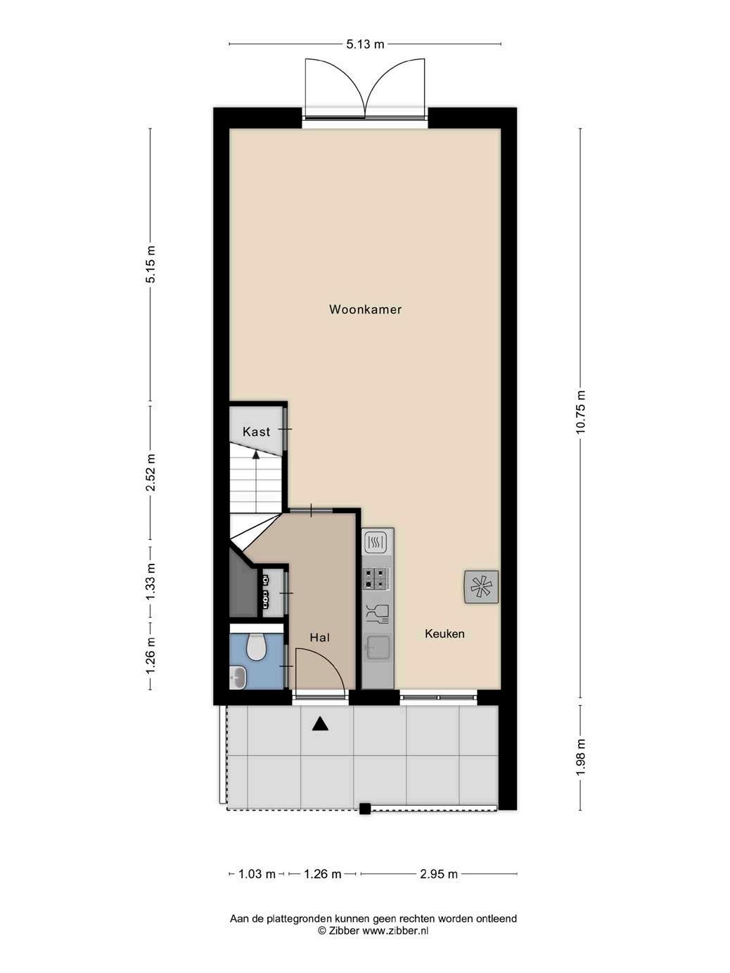 Je stapt de woning binnen in de hal, van waaruit je toegang hebt tot de meterkast, het toilet met fonteintje, de trapopgang naar boven en de woonkamer.