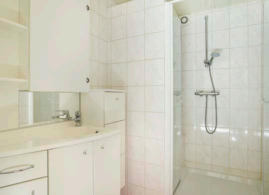 De nette badkamer bevindt zich op de eerste ver dieping. Deze is voorzien van neutraal tegelwerk, een douche met zitgedeelte en een wastafelmeu bel. Tijdens de renovatie van de badkamer is er een stukje van de slaapkamer bijgepakt om een fijne badkamer te realiseren.