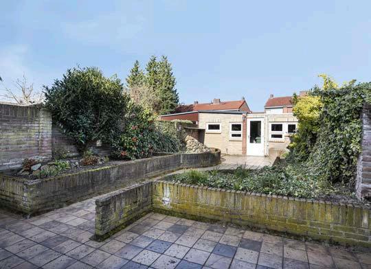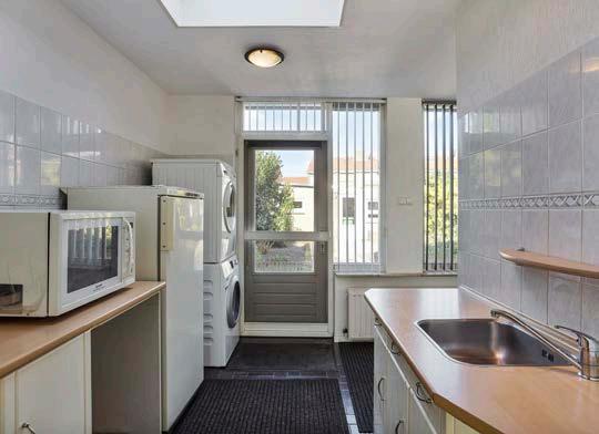 Vanuit de keuken kom je in de bijkeuken met extra keukenblok en de witgoedaansluiting. Vervolgens biedt de buitendeur toegang tot de tuin.