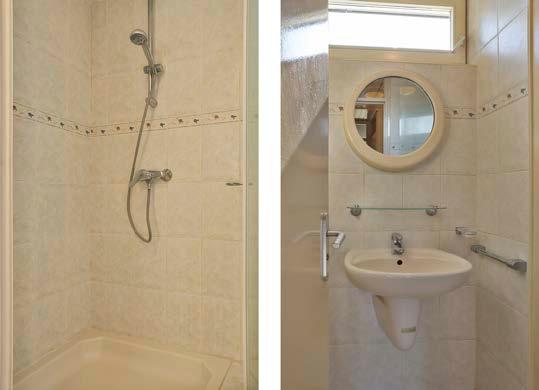 In de nette badkamer - op de eerste verdiepingkun je een efficiënte indeling verwachten, bestaande uit een douche en een wastafel.