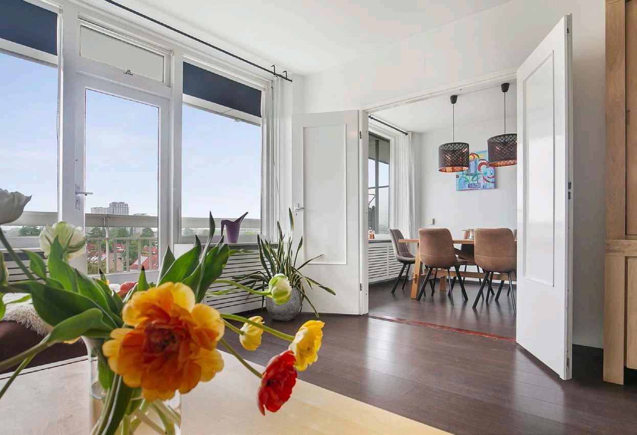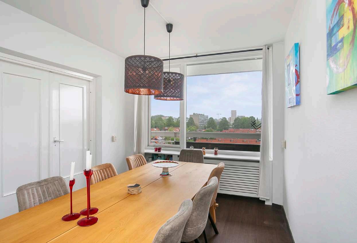 Het woningbrede balkon met prachtig vrij uitzicht is ook absoluut een pluspunt van dit appartement. Hier heb je alle ruimte voor een comfortabel zitje, waar je naast het uitzicht en het zonnetje ook geniet van het uitzicht op de stad en de omgeving.