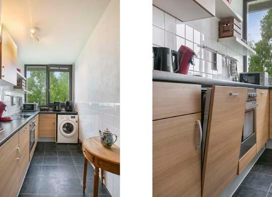 In de dichte keuken staat het keukenblok in een ruime hoekopstelling. De keuken is ingericht met diverse inbouwapparatuur, zoals een oven, een keramische kookplaat en een nieuwe vaatwasmachine. De wasmachine-aansluiting en de boiler (eigendom) zijn hier eveneens te vinden.