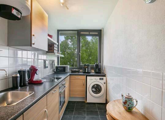 Je parkeert de auto voor de deur op het mooi aangelegde parkeerterrein. Aan de buitenzijde van het appartementencomplex zijn de brievenbussen gevestigd en is er toegang tot de berging waar je de fiets kan stallen. Via de centrale hal brengt de lift of trap je naar de gewenste verdieping. Naast de voordeur van het appartement beschik je nog over een extra berging. Hoe handig is dat!