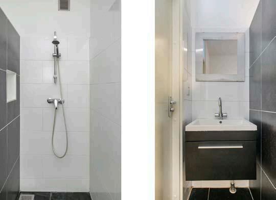 De badkamer is volledig betegeld en netjes afgewerkt met een inloopdouche en een wastafelmeubel met spiegel. Alle shampooflessen zet je keurig weg in de twee nissen in de douche. Naast de badkamer bevindt zich het separate toiletruimte.
