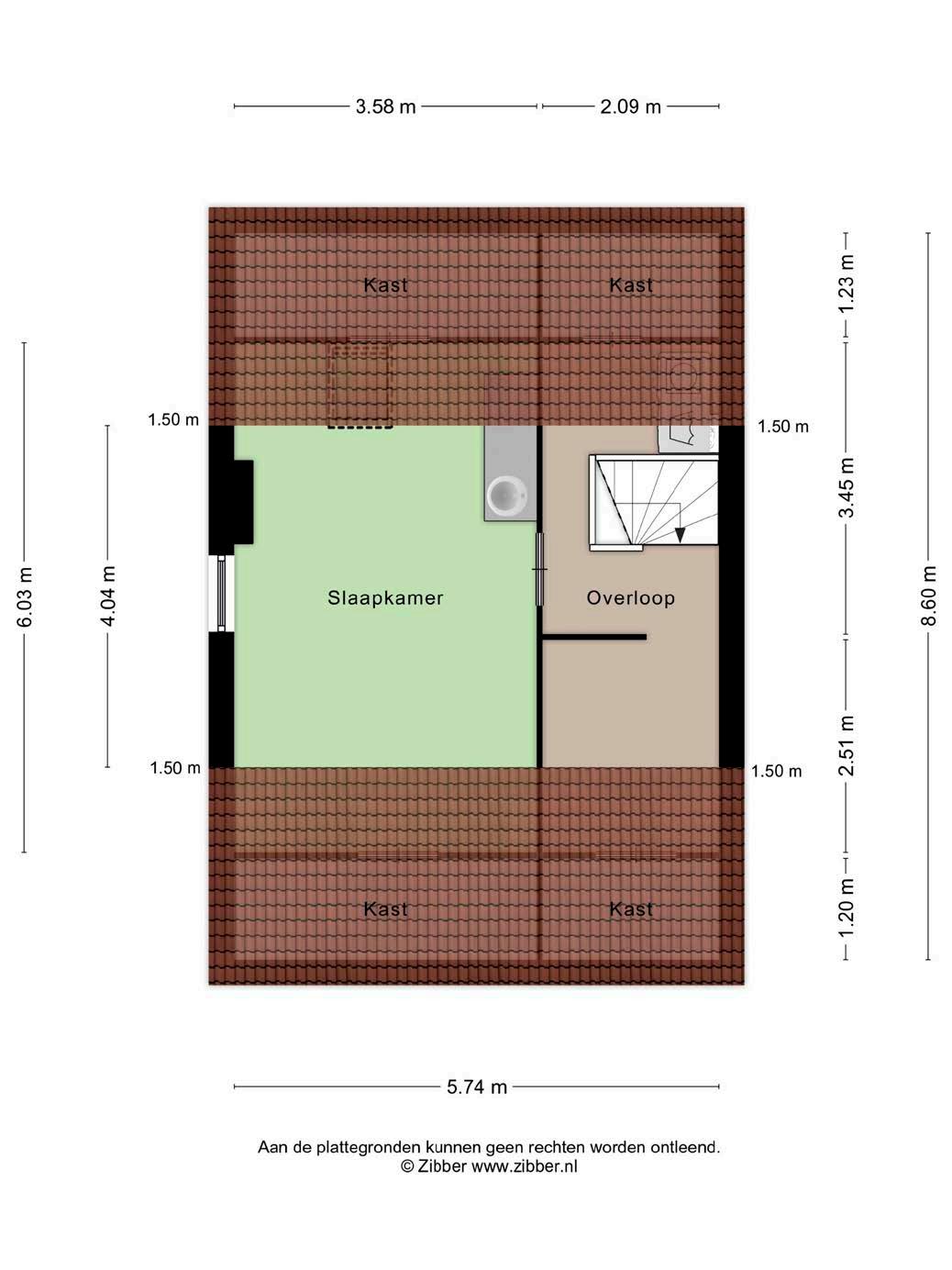 Via een vaste trap is de tweede verdieping bereik baar. Hier bevindt zich een royale vijfde slaapka mer met zowel een groot dakraam als een groot zijraam. Daarnaast ligt ook op deze verdieping een nette laminaatvloer. Ook hier is een wastafel en veel bergruimte aanwezig.