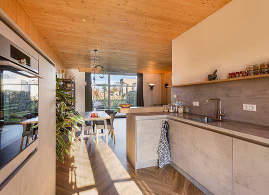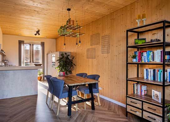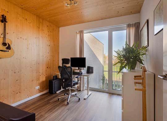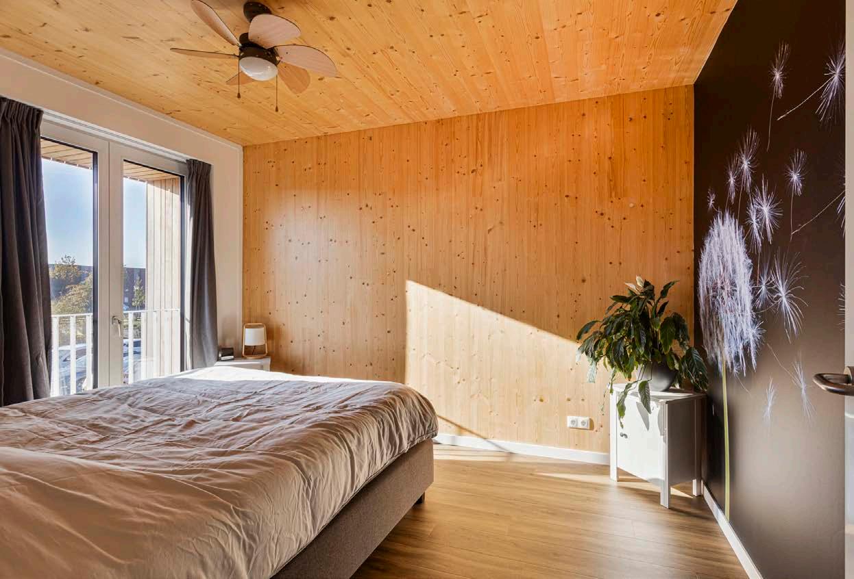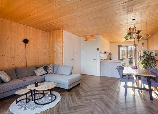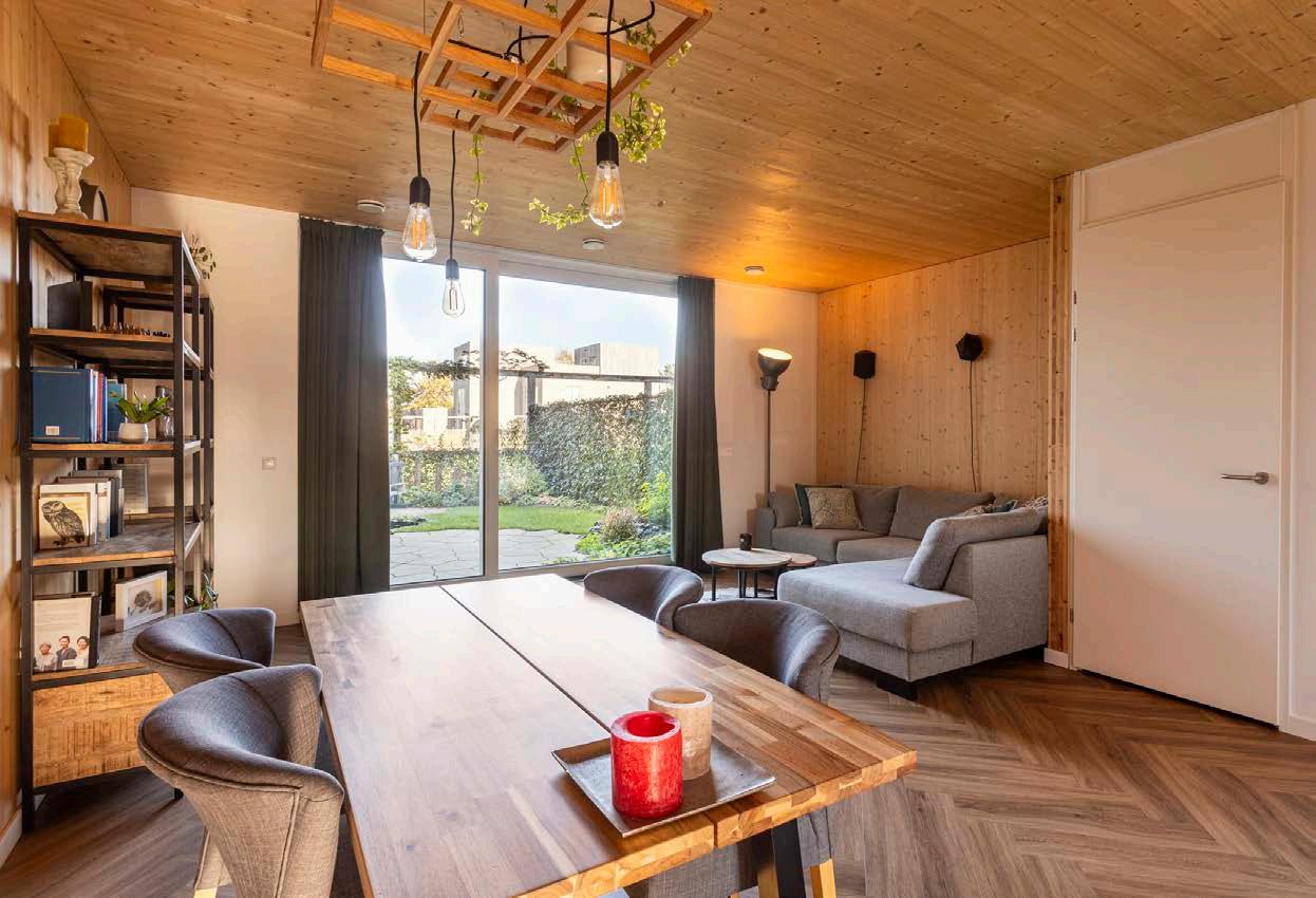 Deze woning is opgetrokken uit massief hout (Cross Laminated Timber, ofwel kruislaaghout). Deze stevige en duurzame bouwmethode zorgt voor een natuurlijke en stabiele structuur en verschilt sterk van de lichtere houtskeletbouw.