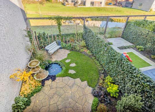 De achtertuin biedt een vrij uitzicht en heeft meerdere verlichtingspunten. Vanuit binnen te schakelen, ideaal voor lange avonden buiten.