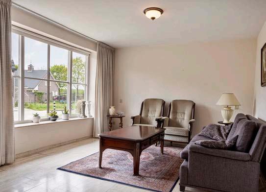 De woonkamer is ruim van opzet en is voorzien van grote raampartijen en openslaande deuren, die voor veel natuurlijk licht zorgen. Zo creëer je een gezellige en lichte sfeer in huis. Daarnaast is de woonkamer afgewerkt met een mooie travertinvloer en gestucte wanden in neutrale kleurstelling. Dit biedt een rustige basis om jouw persoonlijke touch aan toe te voegen.