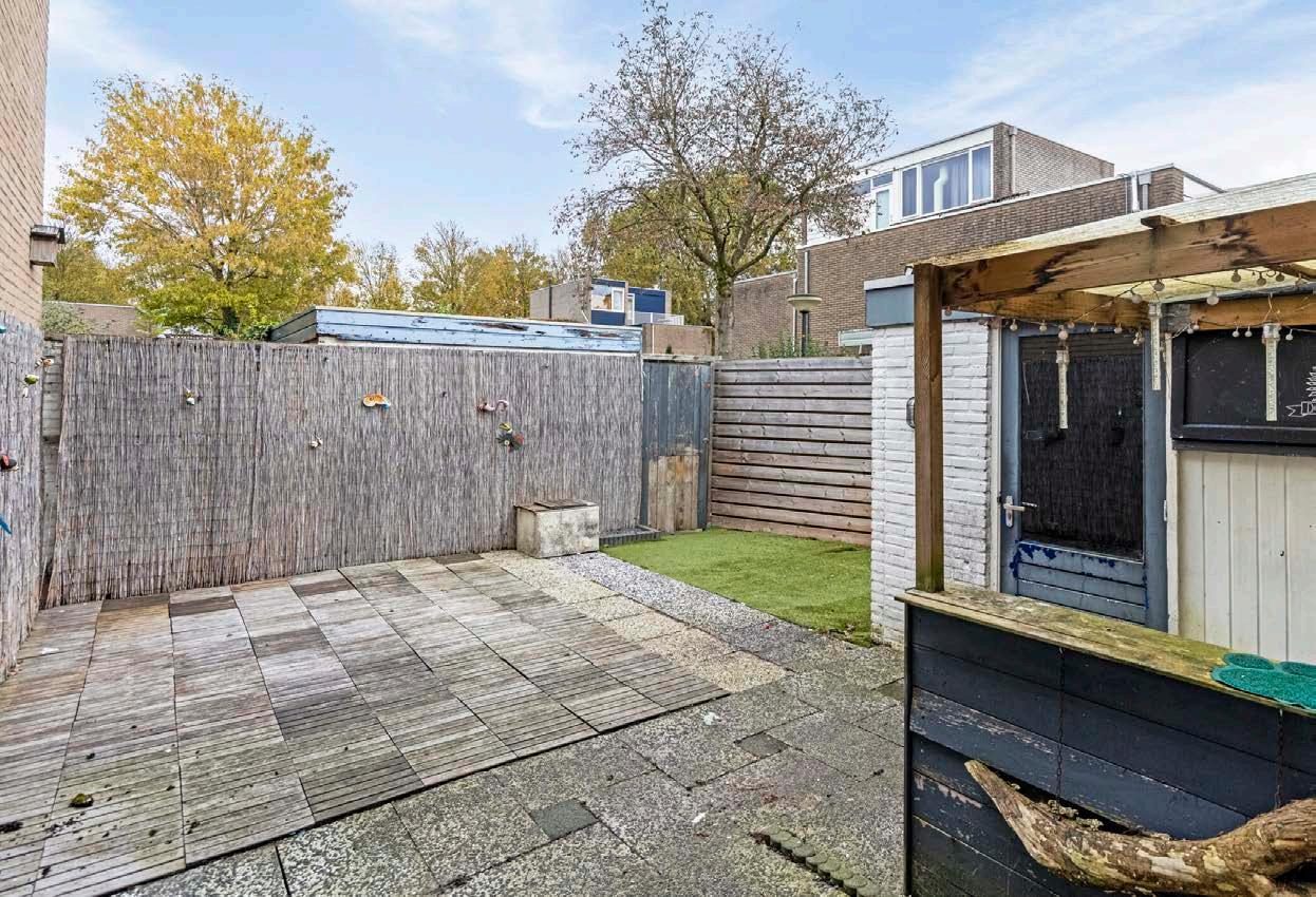 De tuin biedt voldoende ruimte voor een zitje, waar je kunt ontspannen of gezellig samen kunt zijn met vrienden en familie. Het is een praktische en prettig ingerichte buitenruimte. In de tuin vind je ook een handige berging, perfect voor het opbergen van fietsen, tuingereedschap en andere spullen die je graag uit het zicht wilt houden.