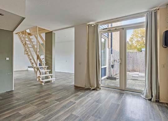 De woonkamer, met zijn oostelijke ligging, krijgt ‘s ochtends veel licht binnen, ideaal voor een fijne start van de dag. Dankzij de kunststof kozijnen geniet je van goede isolatie en weinig onderhoud.