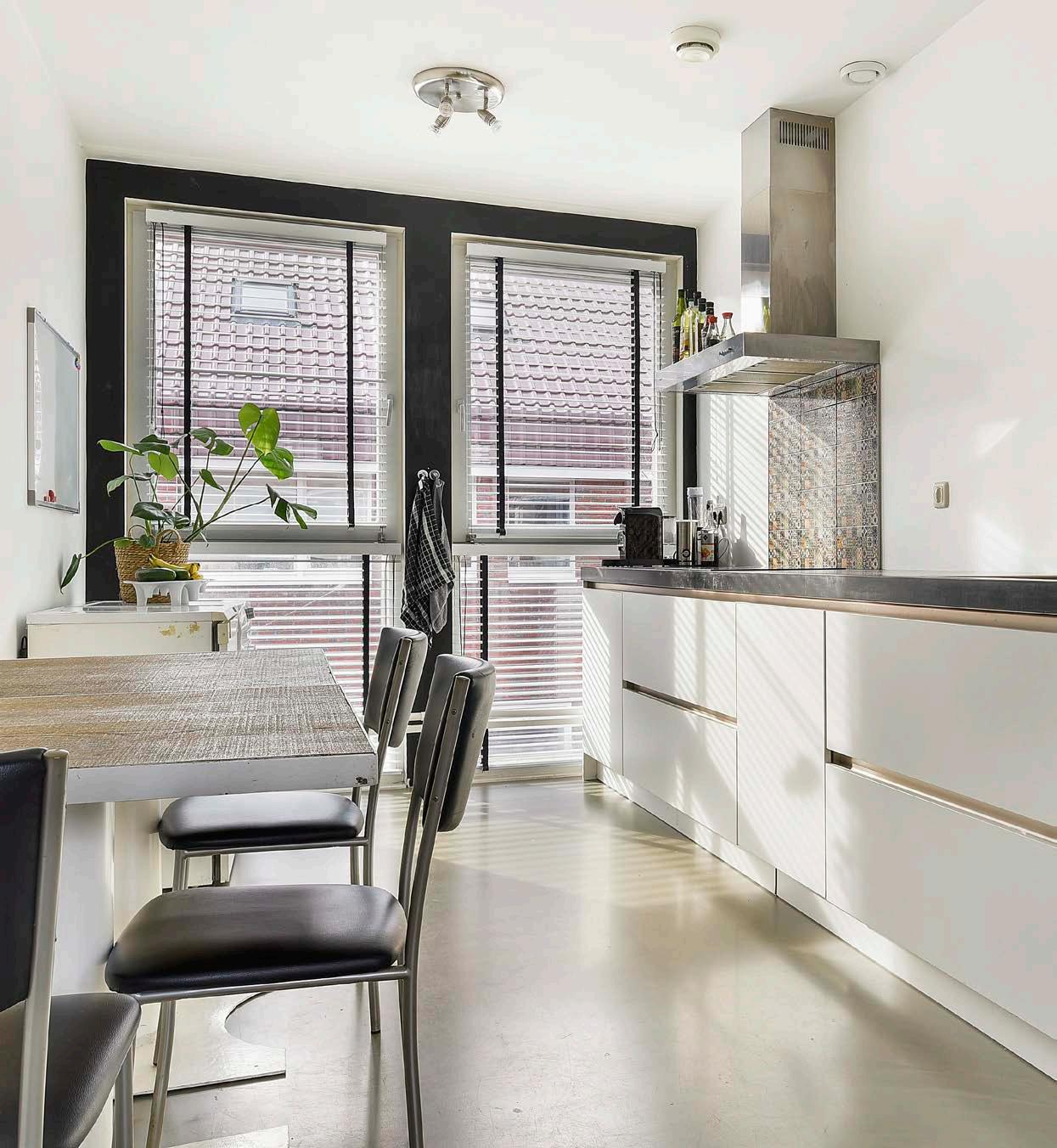 De nette keuken sluit naadloos aan op de woonkamer en is uiteraard voorzien van diverse inbouwapparatuur, te noemen: Een inductiekookplaat, afzuigkap, spoelbak en een vaatwasser. Ook is de ruimte lekker licht dankzij de raampartijen waarbij je tijdens het kokkerellen de ruimte natuurlijk kunt ventileren door de ramen open te zetten. In de keuken heb je tevens de ruimte om een gezellige eettafel te plaatsen.