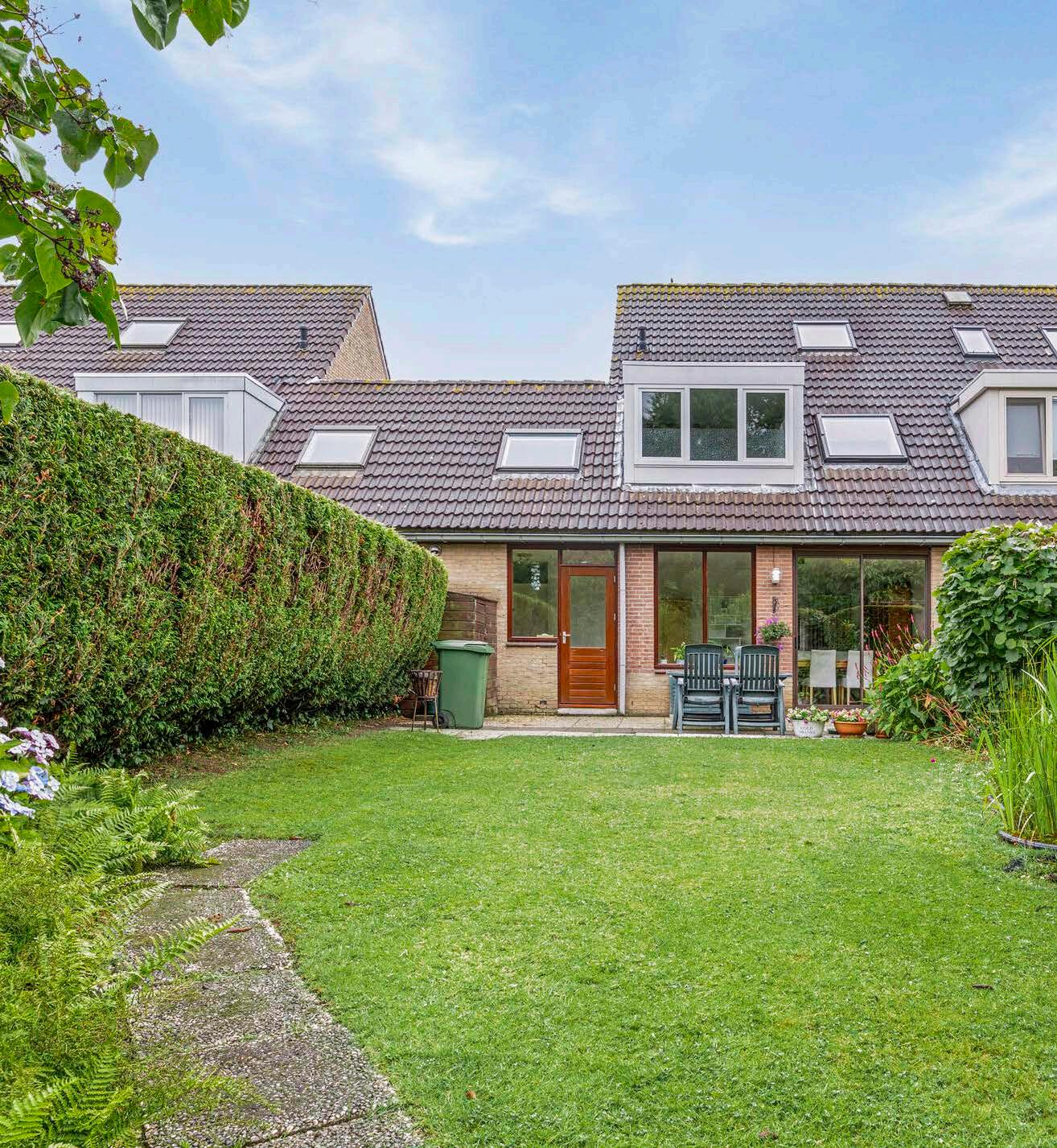 Een van de meest aantrekkelijke kenmerken van deze woning is ongetwijfeld de diepe achtertuin met een vrij uitzicht. De tuin ligt op het noordoosten, wat betekent dat je in de ochtend kunt genieten van de eerste zonnestralen en later op de dag kunt ontspannen in de schaduw.