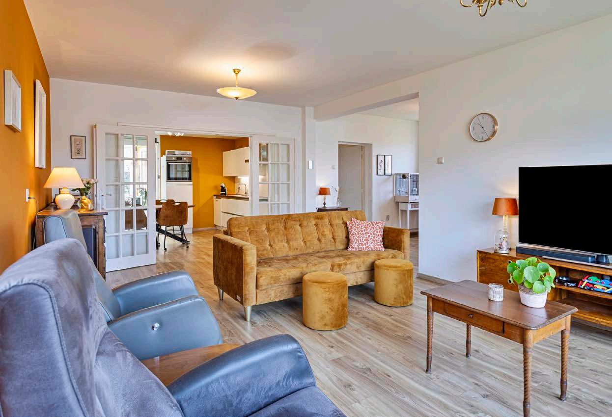 Zodra je de woonkamer binnenstapt, word je verwelkomd door een oase van licht. De grote ramen zorgen voor een overvloed aan natuurlijk licht, waardoor de ruimte een warme en uitnodigende sfeer heeft. Daarnaast is de woonkamer netjes afgewerkt, waar ieder interieurstijl naadloos op aansluit.