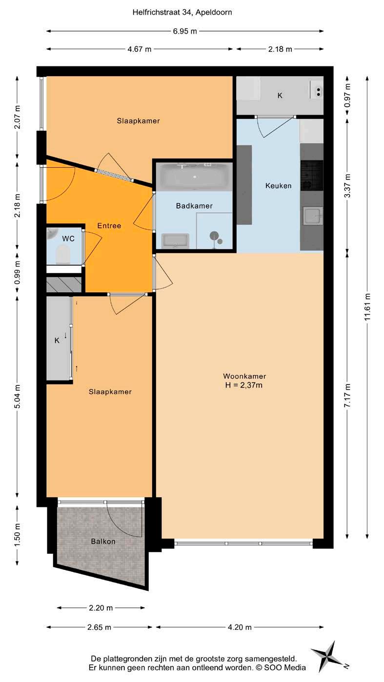 Vervolgens kom je het appartement binnen in de hal met toegang tot vrijwel alle vertrekken. huizen van hendriks