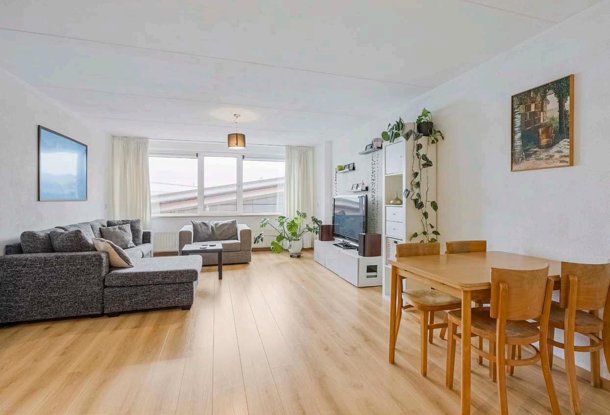 Te starten in de lichte en goed bemeten woonkamer. De ruimte heeft een goede basis met een laminaatvloer, lichte wandafwerking en via het brede raam (met net nieuwe kunststof kozijnen) valt het daglicht aangenaam naar binnen.