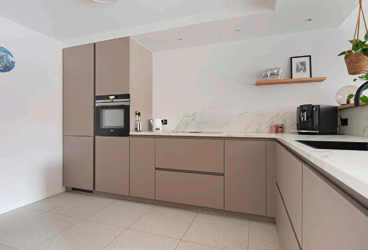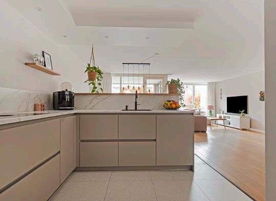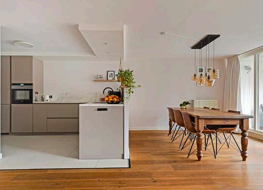 De keuken luxe en gaat naadloos over in de woonkamer. Uitgerust met de nieuwste inbouwapparatuur, waaronder een 4-pits inductiekookplaat, combi-oven, koelkast, vriezer, vaatwasser en Quooker. Hier kun je met plezier koken en tegelijkertijd genieten van het gezelschap van je gasten. Welk gerecht maak jij klaar?