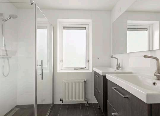 De nette en complete badkamer is afgewerkt in lichte kleurstelling en van grond tot plafond bete geld. De ruimte is ingedeeld met twee wastafels met meubel, toilet en een douche. Spoel de dag van je af!