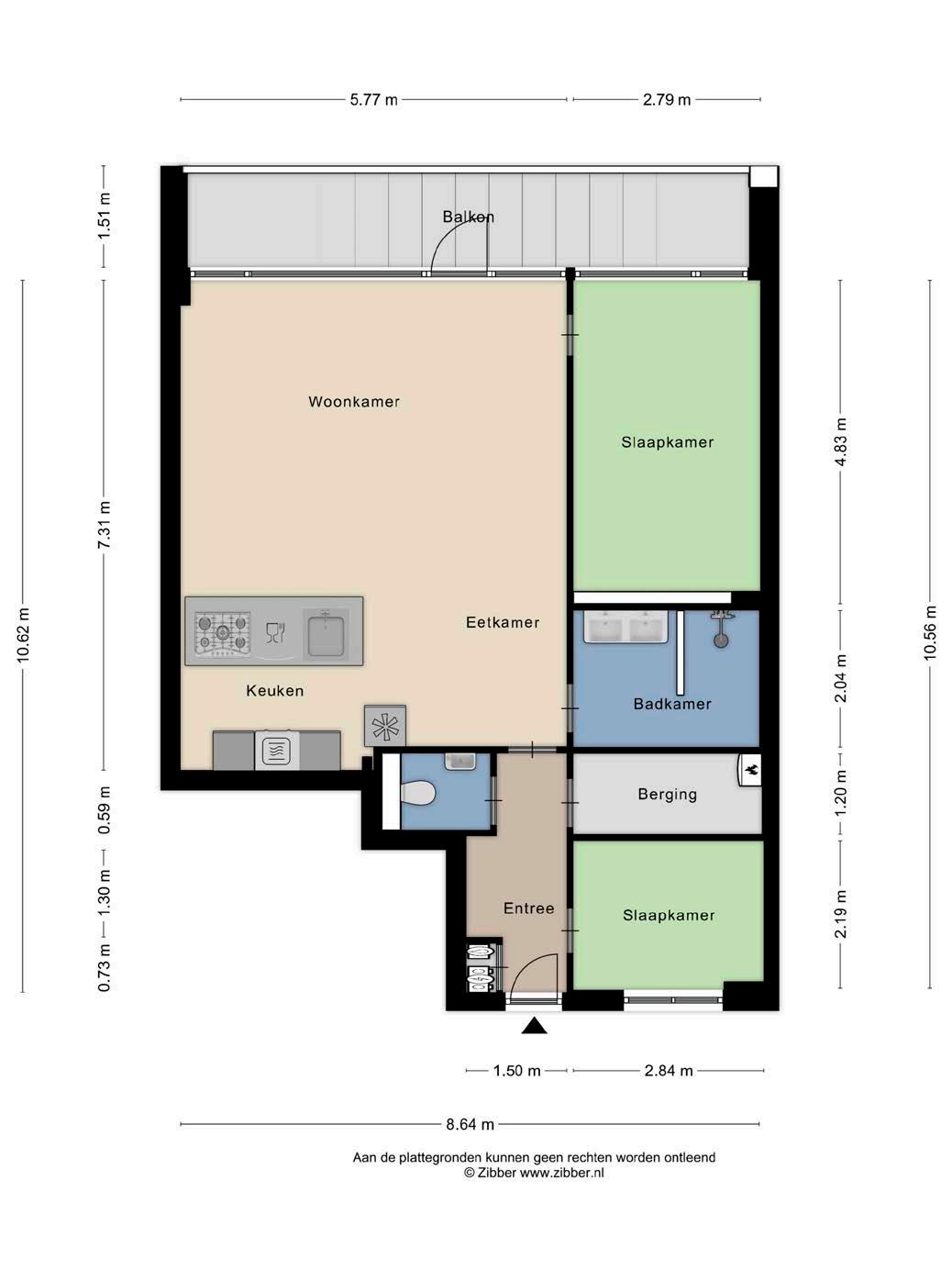 De keuken is compleet uitgerust en biedt voldoende ruimte om te koken. Aan de keukentafel kun je genieten van een ontbijtje met uitzicht op het balkon.