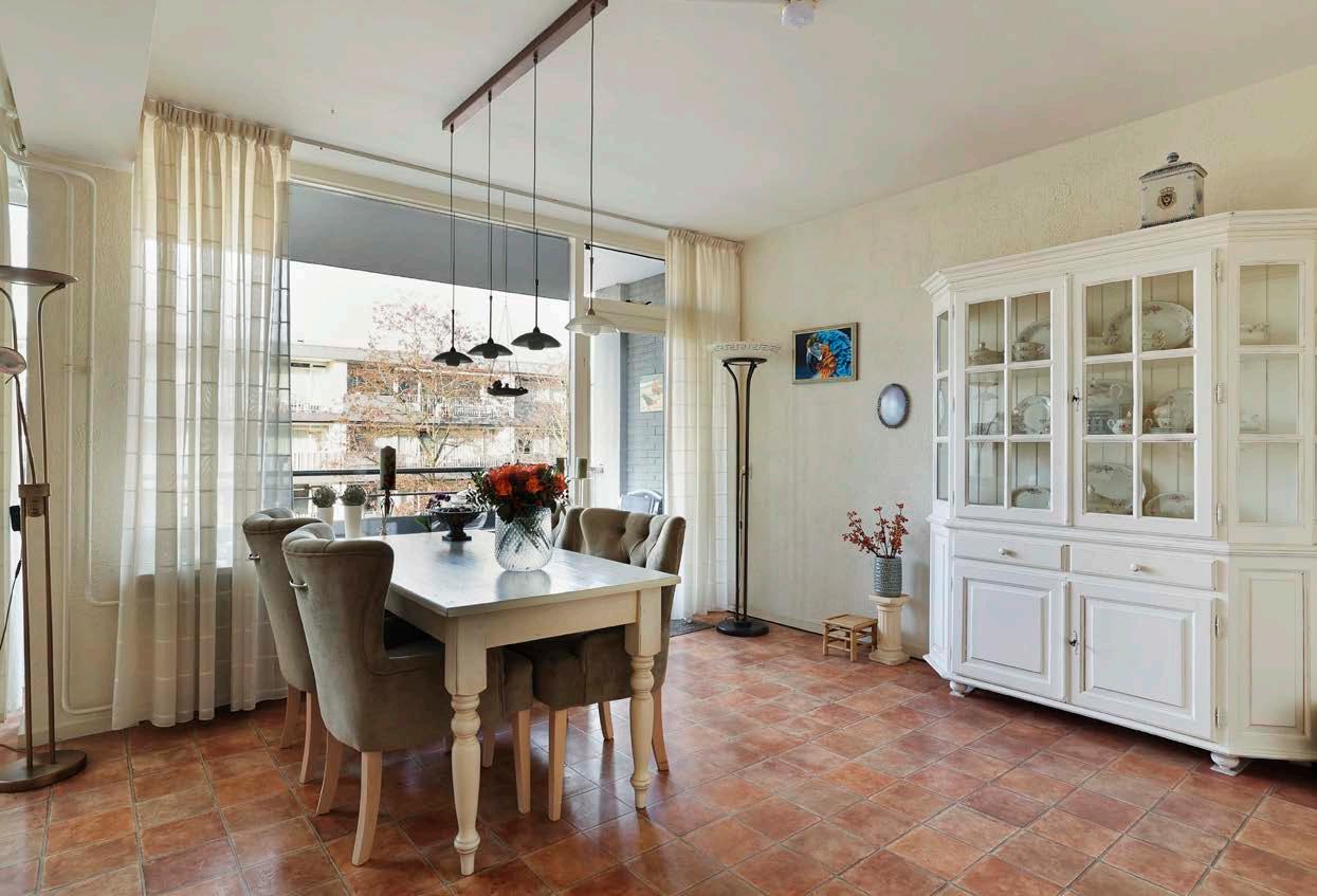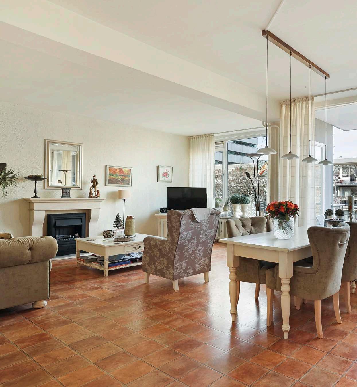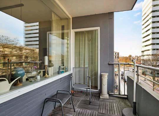 De woon-/eetkamer verleent tevens toegang tot het balkon, welke voldoende ruimte biedt voor een comfortabel zitje. Dankzij de ligging op de derde en tevens hoogste verdieping zit je erg vrij en geniet je van een levendig uitzicht.