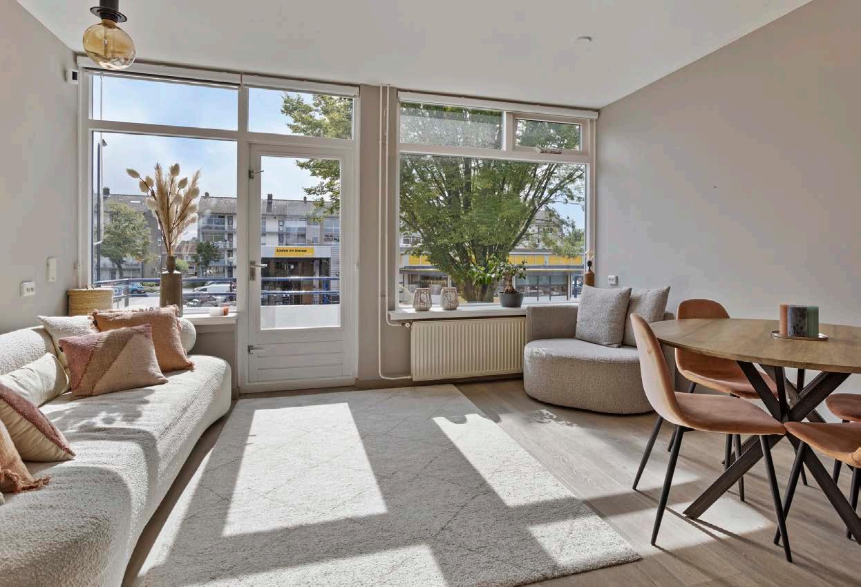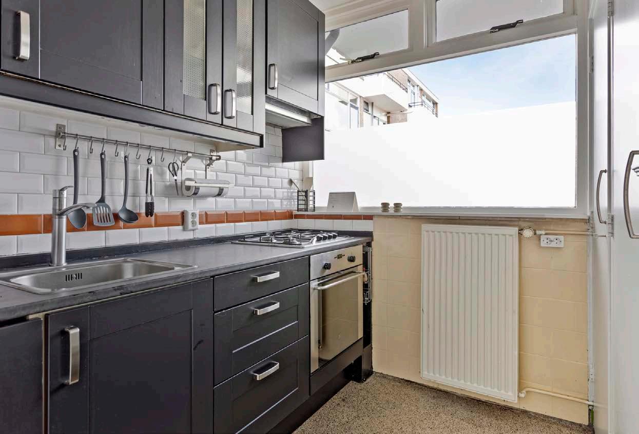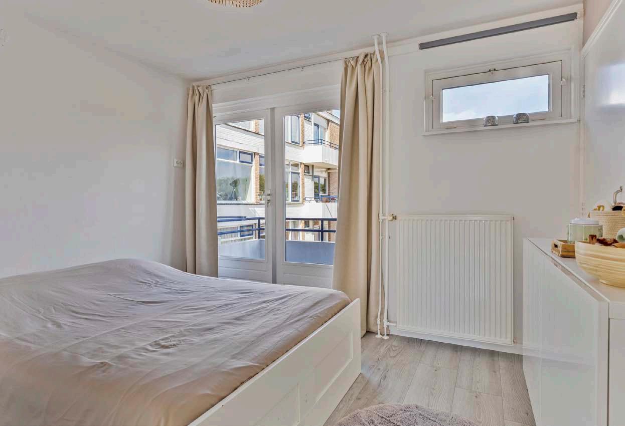 De woonkamer is licht en ruim, dankzij de grote ramen die veel natuurlijk licht binnenlaten. Je hebt hier genoeg ruimte voor een zithoek en een eethoek. De ruime indeling maakt deze ruimte perfect voor zowel ontspanning als het ontvangen van gasten. De woonkamer geeft toegang tot het balkon gelegen op het zuiden met een leuk uitzicht over het Schubertplein, een heerlijke plek voor je ochtendkoffie, een borrel na een drukke werkdag of om even te ontspannen met een boek.