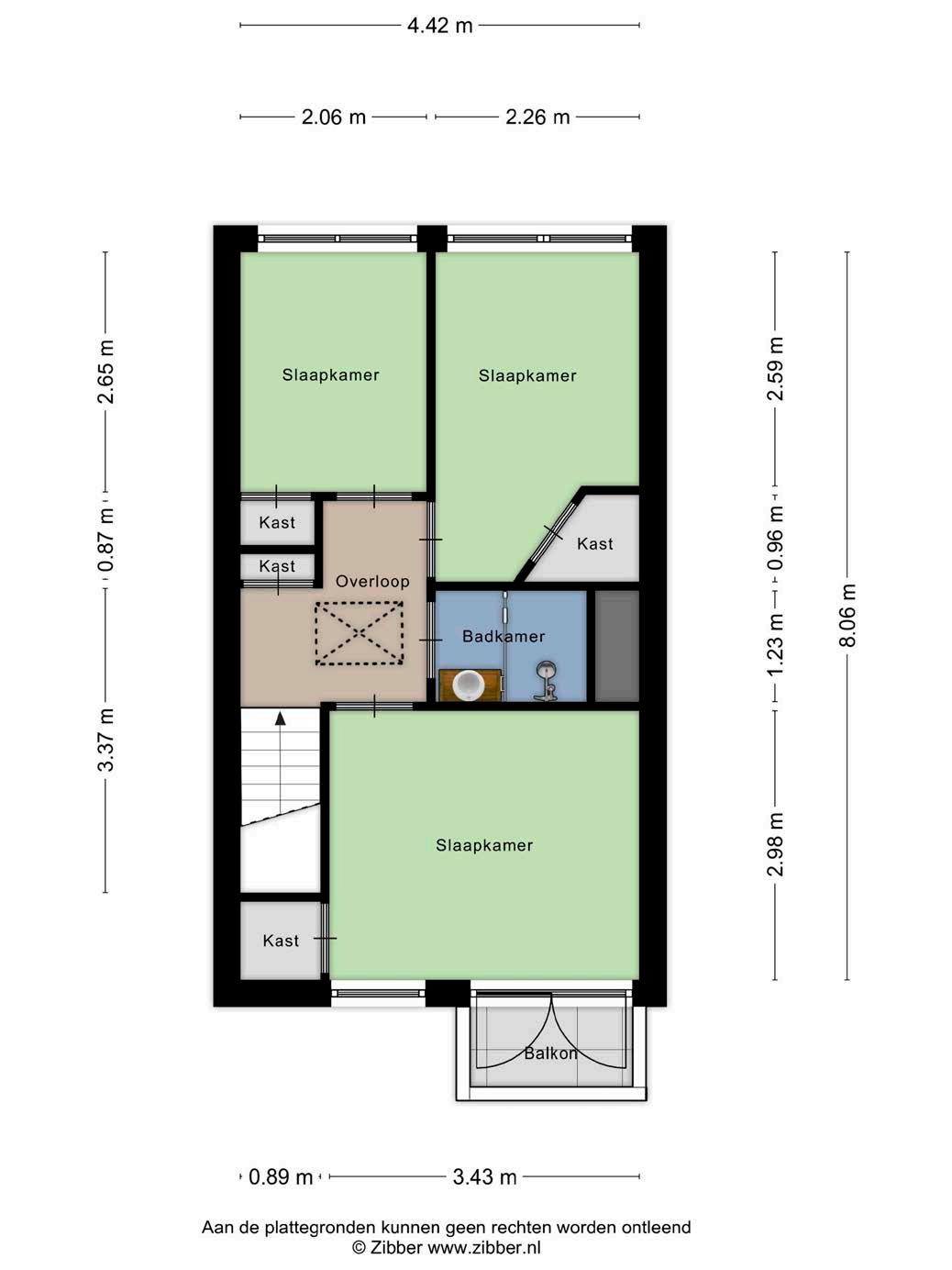 Op de tweede verdieping van deze maisonnette bevinden zich drie slaapkamers en de badkamer. De hoofdslaapkamer is ruim genoeg voor een tweepersoonsbed en een kledingkast. De hoofdslaapkamer beschikt over een balkon gelegen op het noorden, een perfecte plek om even te genieten van de schaduw. De overige twee kamers zijn flexibel in te vullen als logeerkamer, thuiskantoor of hobbyruimte.