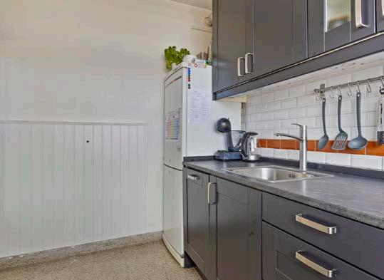 De nette keuken is praktisch ingericht, met alle benodigde apparatuur en voldoende kastruimte. Door de grote ramen komt er veel licht binnen.