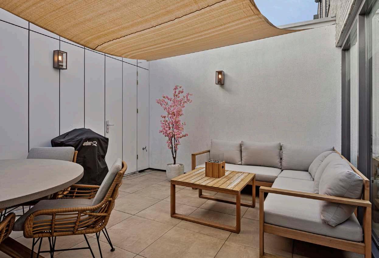 De patiotuin is een oase van rust en privacy. Deze buitenruimte is perfect voor ontspanning, gezelligheid en buiteneten. Dankzij de openslaande deuren wordt de tuin optimaal bij de living betrokken, waardoor binnen en buiten naadloos in elkaar overgaan.