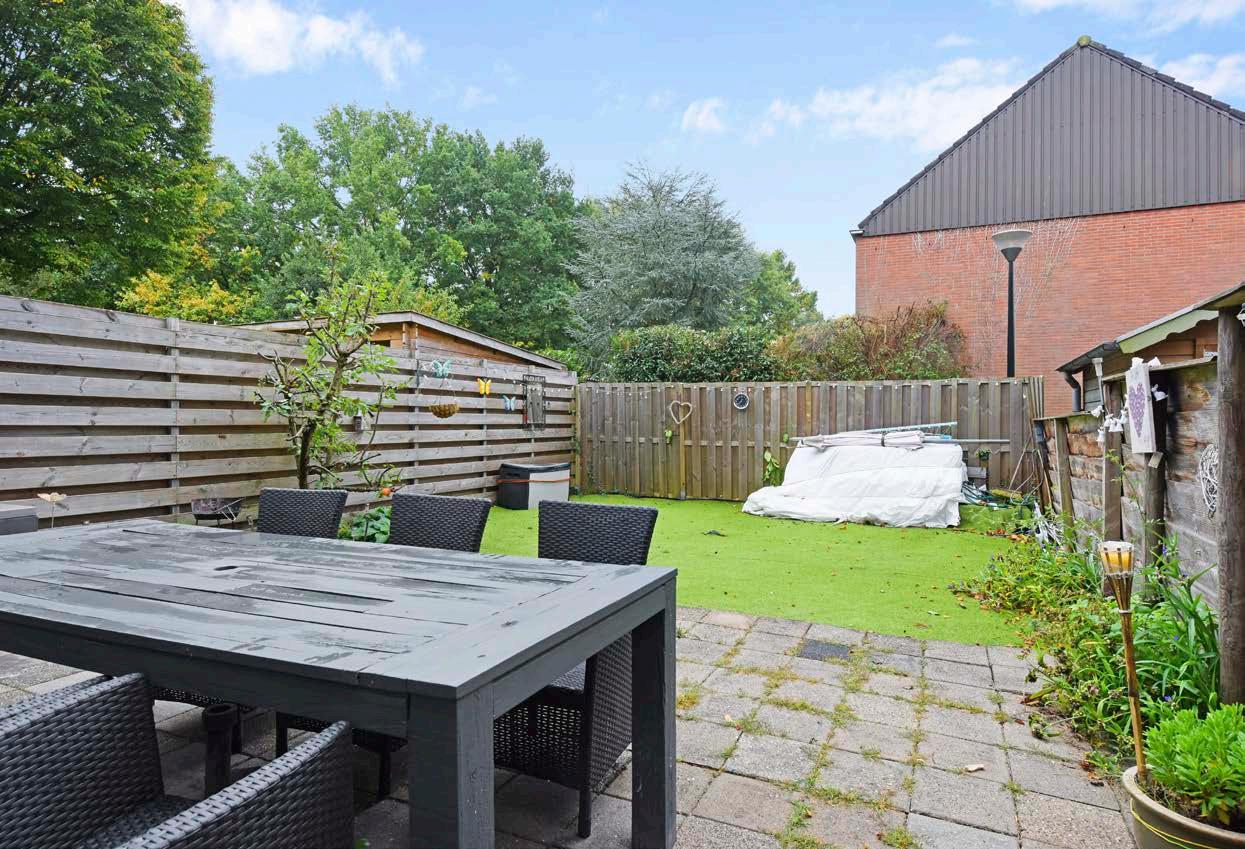 Vanuit de woonkamer kom je in de achtertuin op het zonnige zuiden. De tuin is onderhoudsvriendelijk aangelegd met kunstgras en bestrating waardoor je hier naar onderhoud dus maar weinig omkijken hebt. Verder heb je nog de beschikking over een vrijstaande stenen berging met elektra.