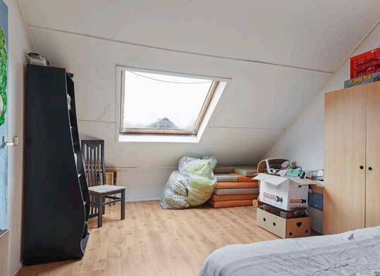 Op de tweede verdieping tref je een tweede ruime overloop met de cv-installatie, gevolgd door nog een vijfde (slaap)kamer. Deze kamer is neutraal afgewerkt en wordt middels een schuin dakraam voorzien van een fijne hoeveelheid daglicht.