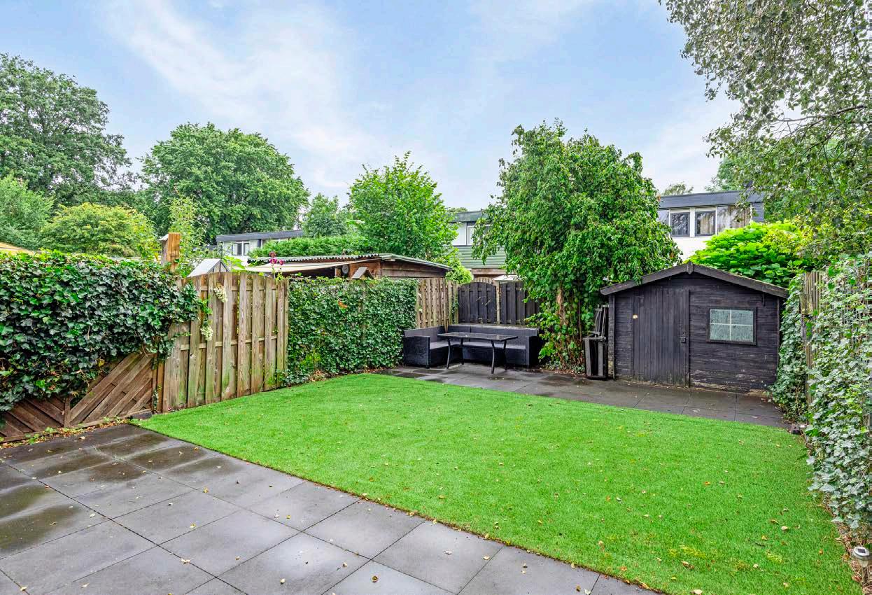 De tuin is een van de grote pluspunten van deze woning. Gelegen op het oosten, kun je hier volop genieten van de ochtendzon en de koelte in de middag. Met een perceeloppervlakte van 197 m² is er voldoende ruimte voor kinderen om te spelen, een moestuin om je eigen groenten te kweken, of een gezellige zithoek waar je met vrienden en familie kunt ontspannen. De tuin is gemakkelijk toegankelijk vanuit de woonkamer, waardoor binnen en buiten naadloos in elkaar overgaan. Dit maakt het de perfecte plek voor lange zomeravonden en gezellige barbecues.