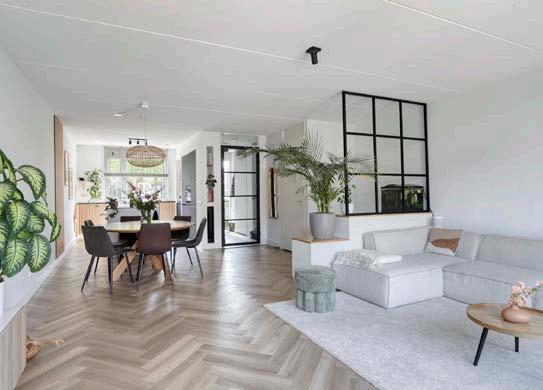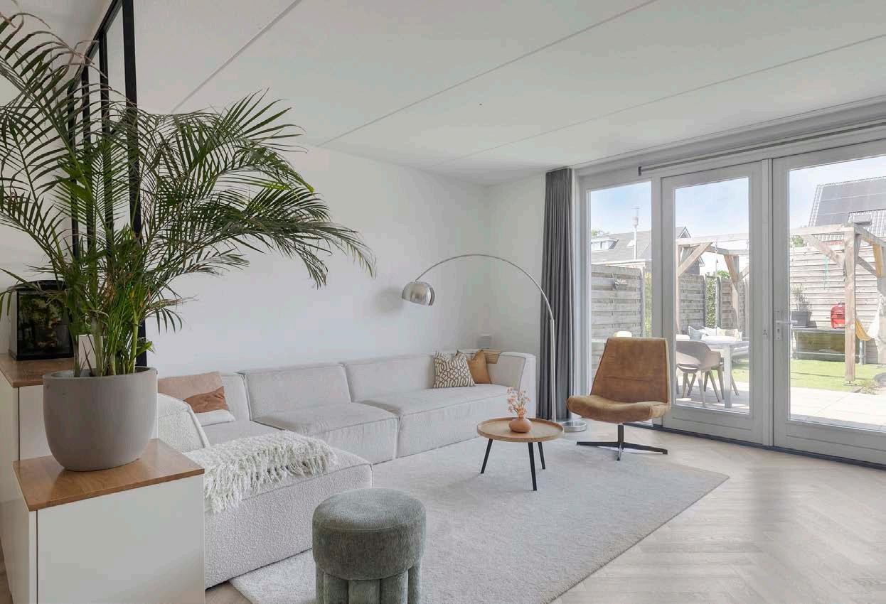 De royale en lichte woonkamer is de ideale ruimte om te ontspannen, spelletjes te spelen of samen te komen met familie en vrienden. De grote ramen zorgen voor veel natuurlijk licht en bieden uitzicht op de tuin, waardoor de binnen- en buitenruimte naadloos in elkaar overlopen.