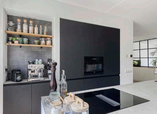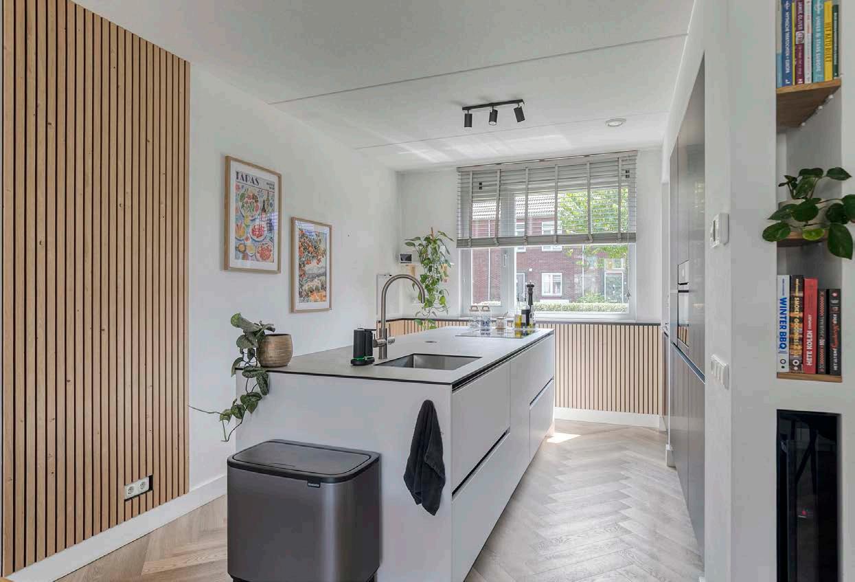 De moderne open keuken uit 2023 is compleet uitgerust met inbouwapparatuur, nodigt uit tot culinaire avonturen terwijl er genoeg ruimte overblijft voor een gezellige eethoek. De keuken is voorzien van een koelkast, vaatwasmachine, vierpits inductiekookplaat met afzuigunit en enorm veel opbergruimte. Dit maakt het niet alleen een functionele, maar ook een gezellige plek om te koken en te eten.