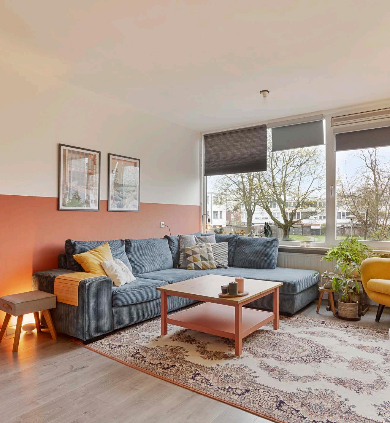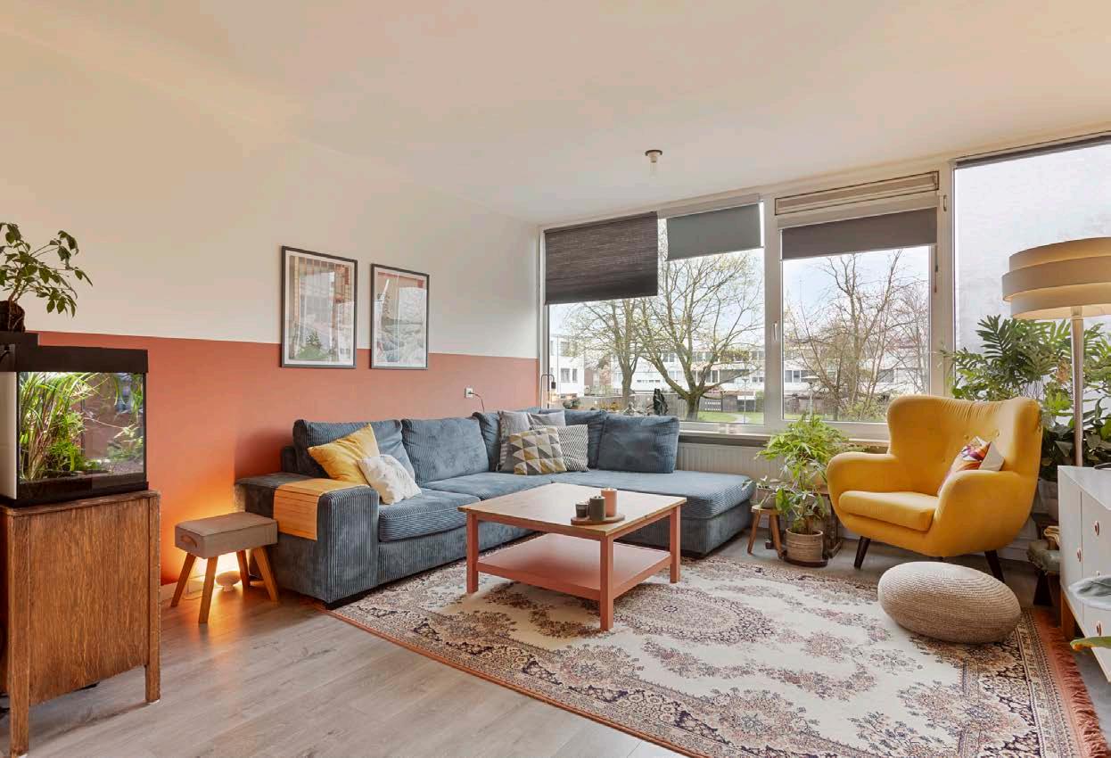 Sinds drie jaar wonen wij hier samen. Het is een heerlijke lichte en ruime woning. Direct achter de woning ligt een klein parkje. Ideaal voor kinderen of het uitlaten van de hond. Vooral in de zomer is het uitzicht vanuit de woonkamer op de 1e verdieping erg mooi. Je kijkt uit over al het groen van de bomen, dit geeft een heel vrij en rustgevend gevoel. Je kunt dan heerlijk genieten met een kopje koffie bij het raam, met de zon op je gezicht.