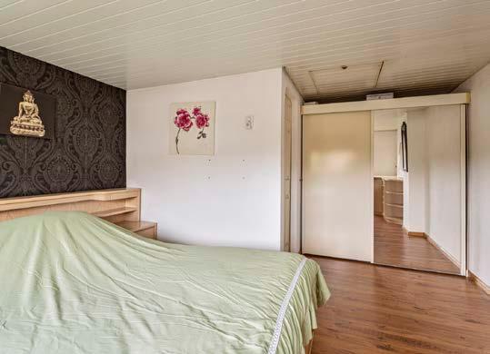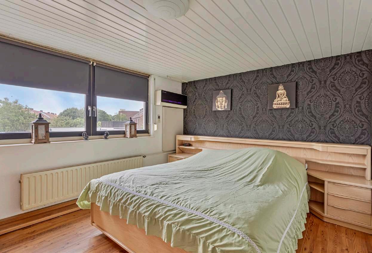 Op de eerste verdieping vind je twee ruime slaapkamers die ideaal zijn voor een goede nachtrust. Beide kamers zijn voorzien van laminaatvloeren en stucwerk wanden, wat zorgt voor een moderne en frisse uitstraling. De kamers bieden voldoende ruimte voor een groot bed, kledingkasten en zelfs een bureau. Perfect voor een gezin of voor het creëren van een werkplek aan huis.
