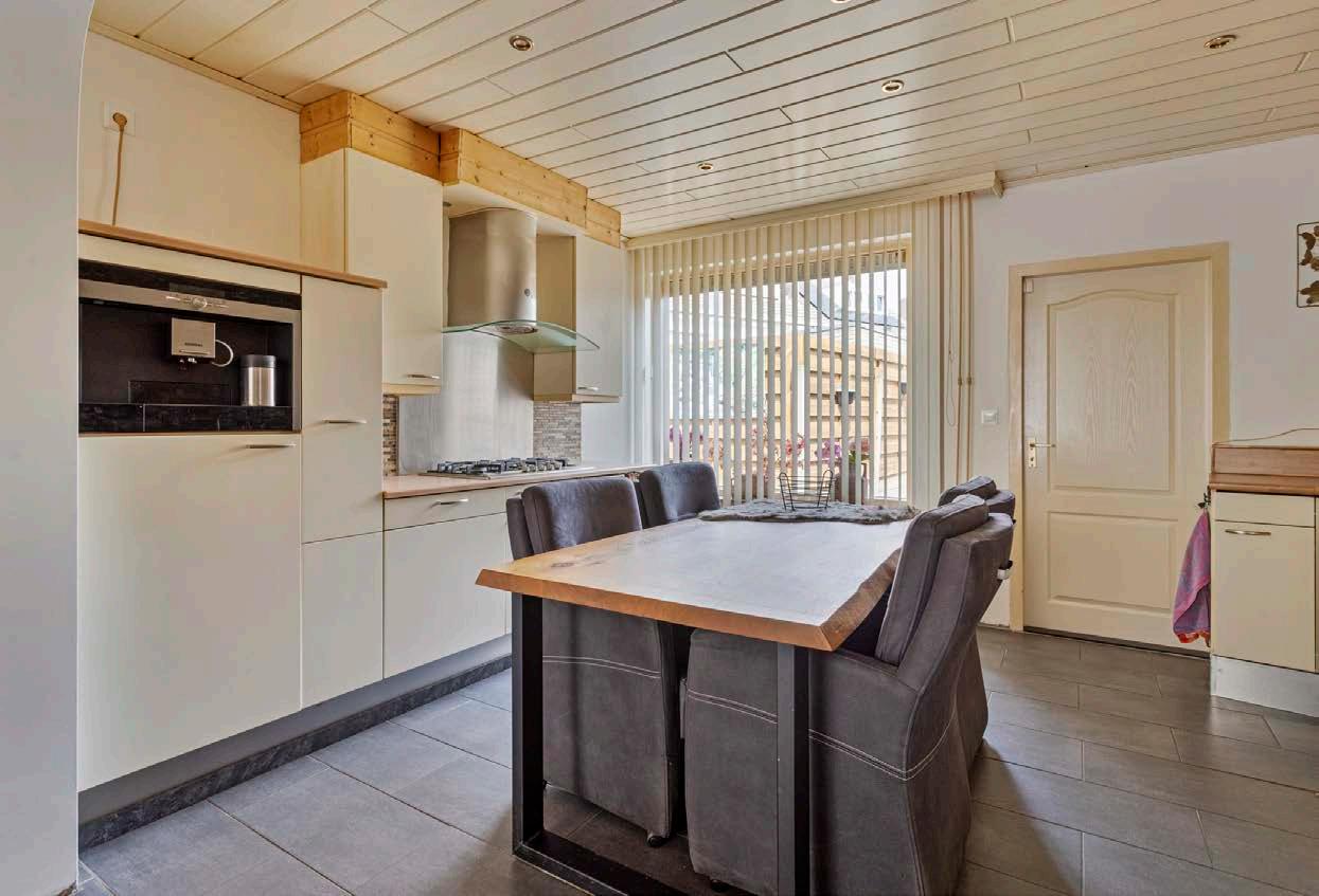 Kookliefhebbers opgelet! Deze nette keuken aan de achterzijde van de woning is volledig uitgerust met inbouwapparatuur. Van een grote koelkast tot een efficiënte vaatwasser, alles wat je nodig hebt om de lekkerste maaltijden te bereiden is binnen handbereik. De keuken biedt veel werkruimte en opbergmogelijkheden, zodat je altijd georganiseerd kunt koken.