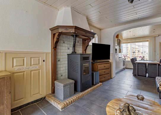 De woonkamer is het hart van elk huis, en dit huis is daarop geen uitzondering. Met een oppervlakte van 25 vierkante meter biedt deze ruimte voldoende plek voor een comfortabele zit- en eethoek. De pelletkachel zorgt voor een aangename warmte en brengt een knusse, huiselijke sfeer in de kamer. Ideaal voor koude winteravonden waar je met een warm drankje en een goed boek kunt ontspannen.