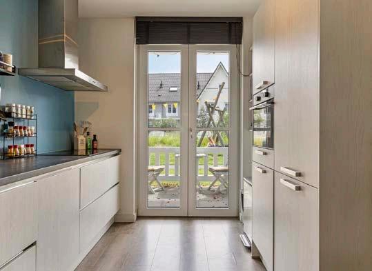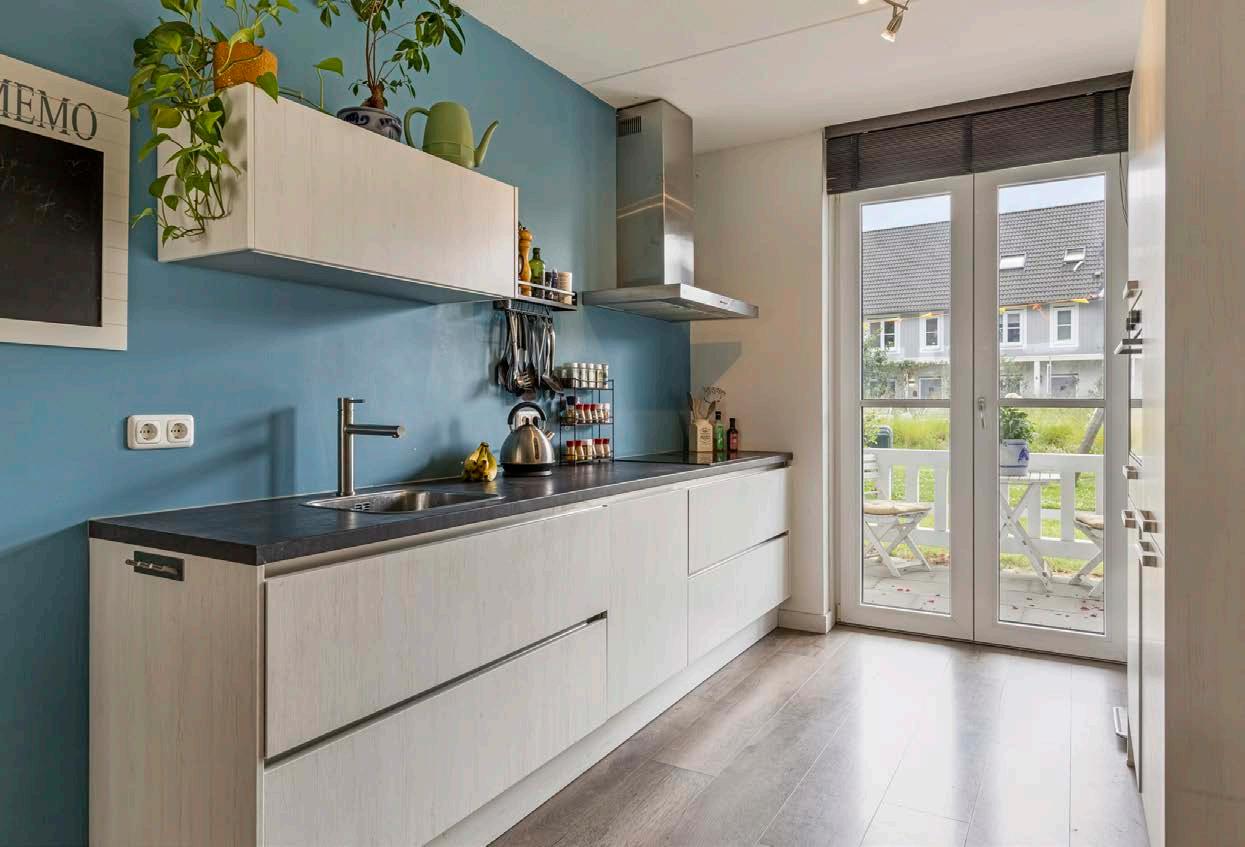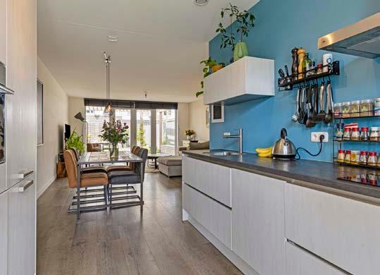 De keuken is gelegen aan de voorzijde van de woning uit 2019. Deze heeft een keukenblok in rechte opstelling welke is voorzien van veel gemakken. Zo vindt u hier een kookplaat, afzuigkap, spoelbak, koelkast, combi-oven en een vaatwasser.